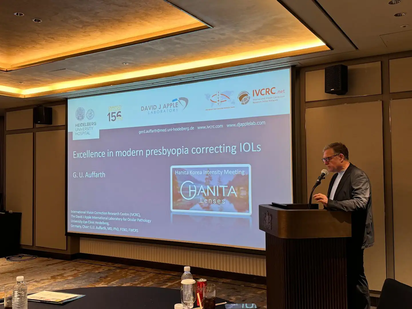 Prof. Dr. med. Gerd U. Auffarth, MD, FEBO, FWCRS led the session with a lecture titled “Excellence in Modern Presbyopia-Correcting IOLs,” where he shared insights into the latest advancements in cataract surgery, the evolving approach to selecting the right IOL for patients, and the unique advantages of Hanita’s Intensity lens.